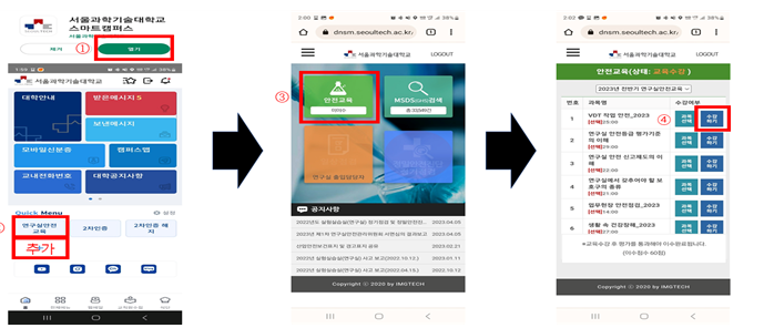 ※ https://dnsm.seoultech.ac.kr/(연구실안전관리시스템 사이트)